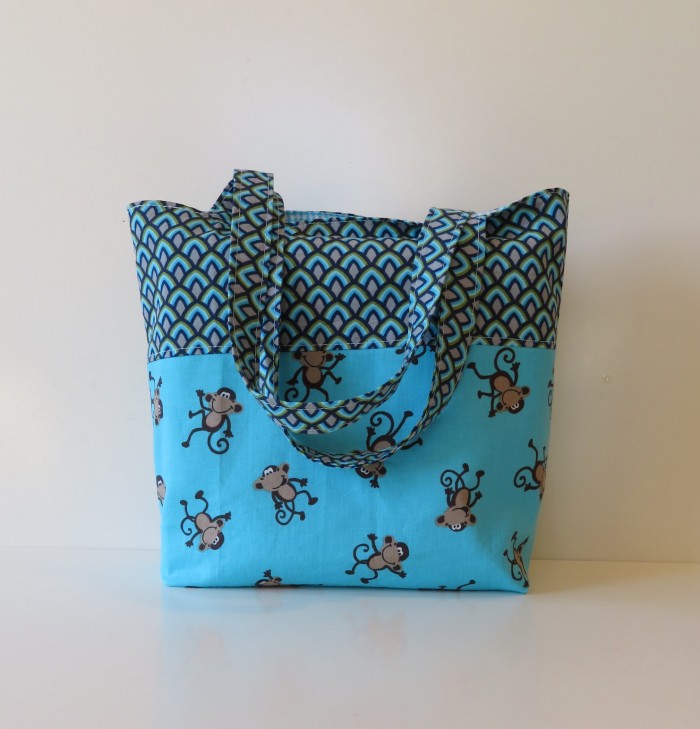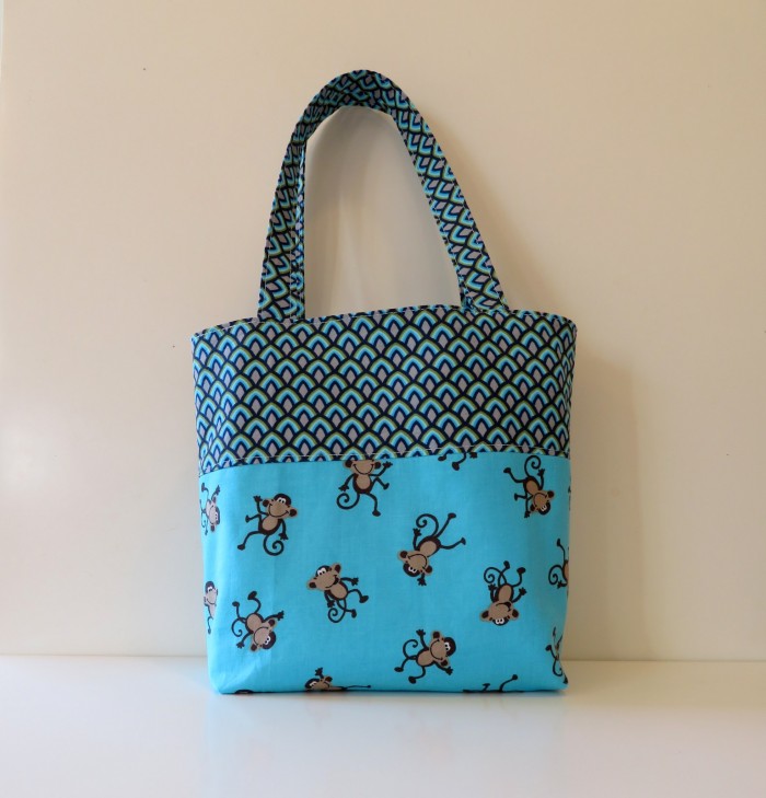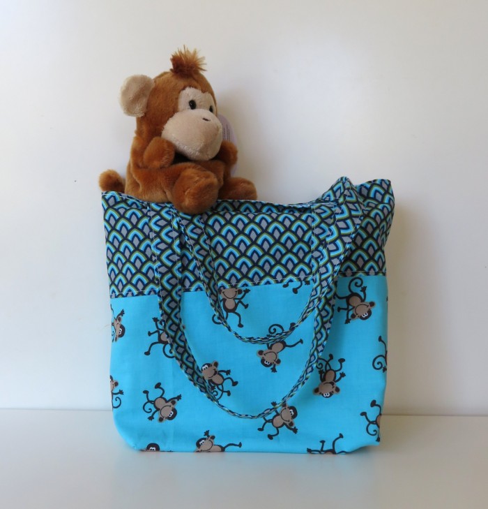 Het tasje is gemaakt van drie bij elkaar passende stofjes.