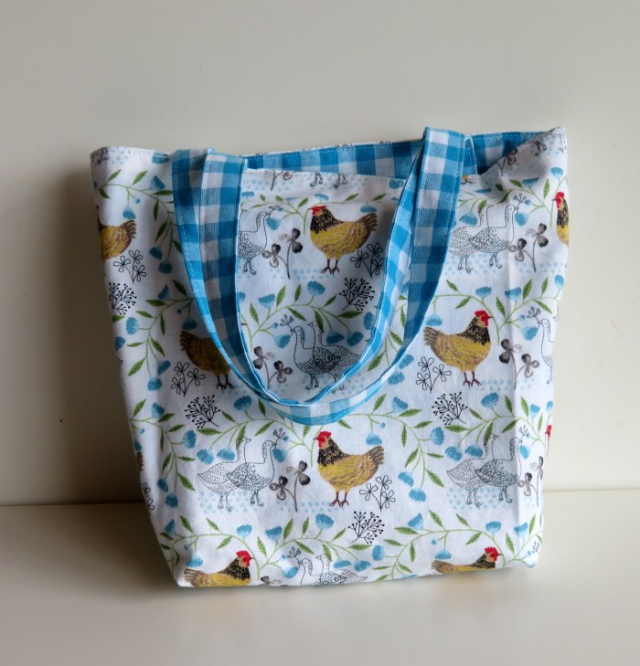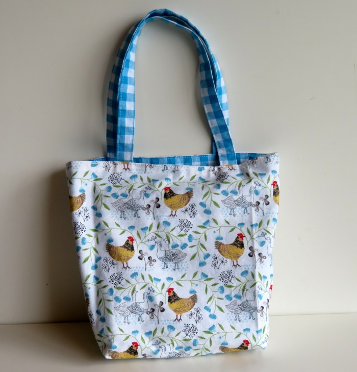 Gevoerd katoenen tasje met afbeeldingen van koppen en ganzen.