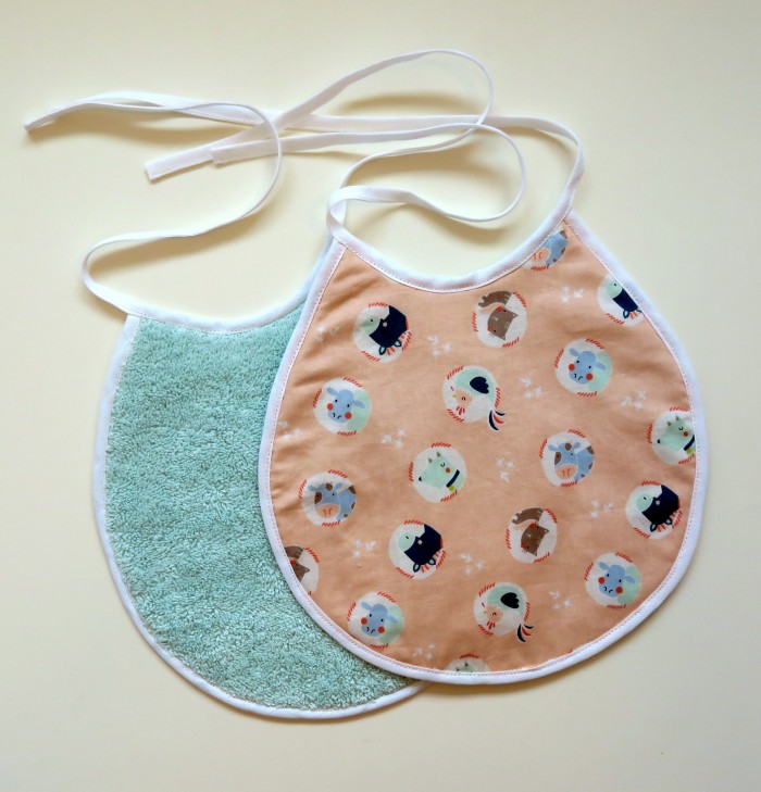 Set van twee slabbetjes gemaakt van katoen en badstof.