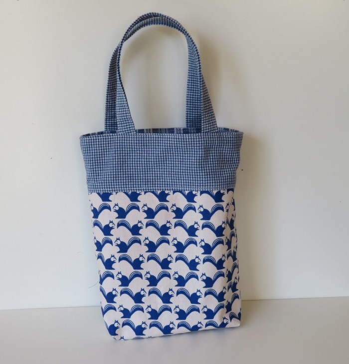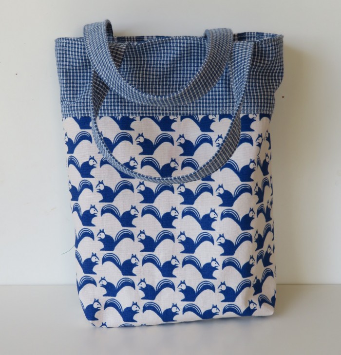 De eekhoorntjes stof is iets steviger dan de twee bijpassende blauwe ruitjes stoffen.