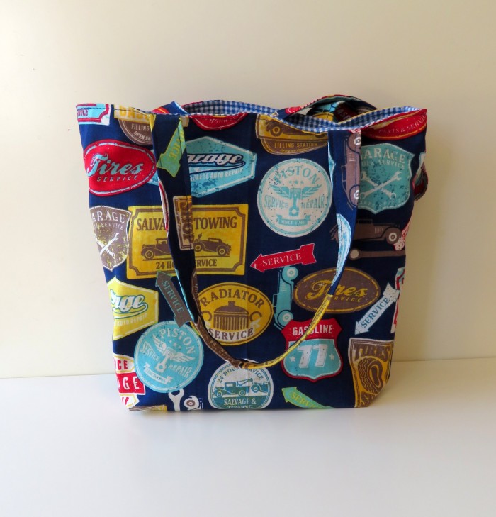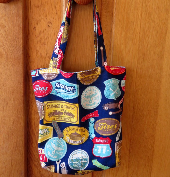 Origineel tasje met print van emblemen voor auto garages e.d.