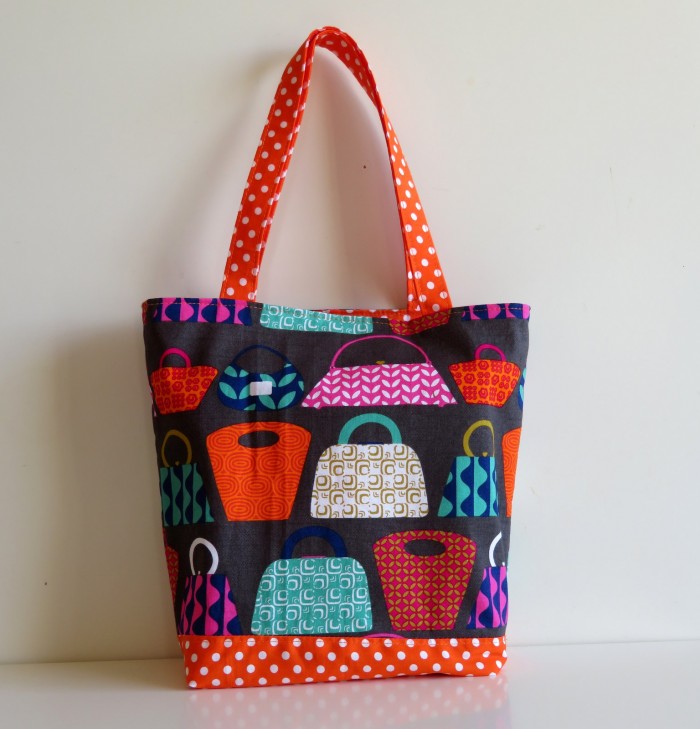 Het tasje is afgewerkt met een vrolijke oranje stippenstof.