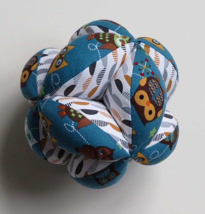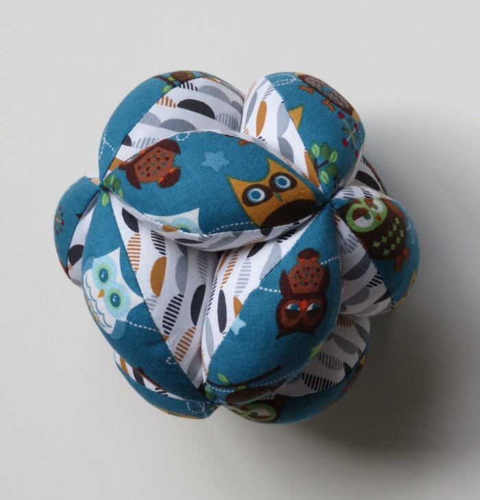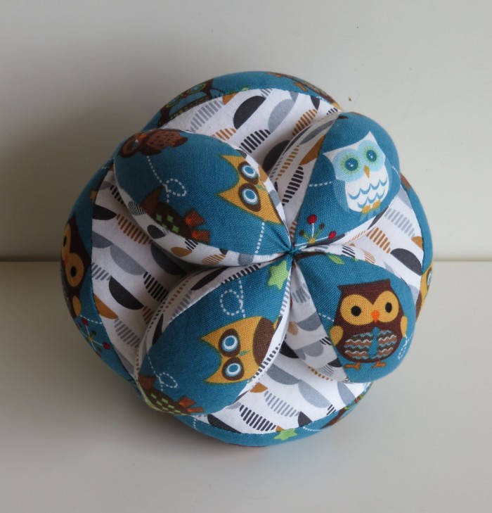 De uil grijpbal isgemaakt van twee mooi bij elkaar passende stofjes.