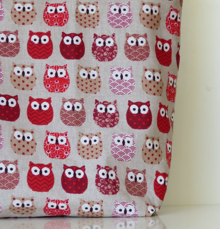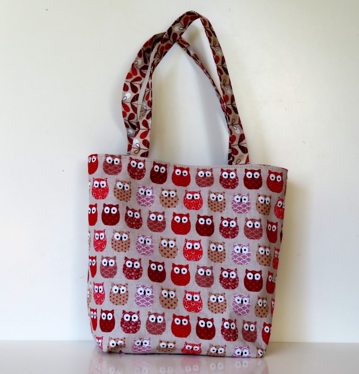 Gevoerd tasje met uiltjesprint gemaakt van een wat steviger katoentje.