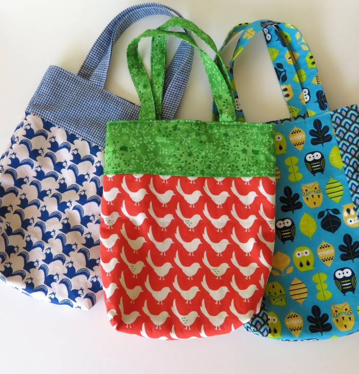 Gevoerd stoffen tasje gemaakt van drie bij elkaar passende stofjes.