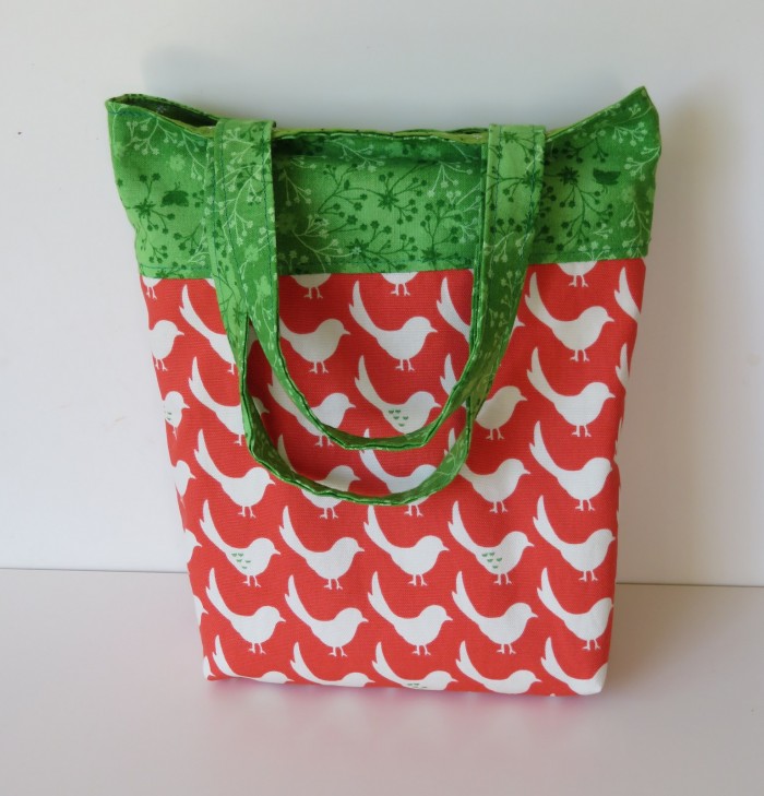 De oranje stof met vogeltjes is iets steviger dan de overige katoenen stoffen.