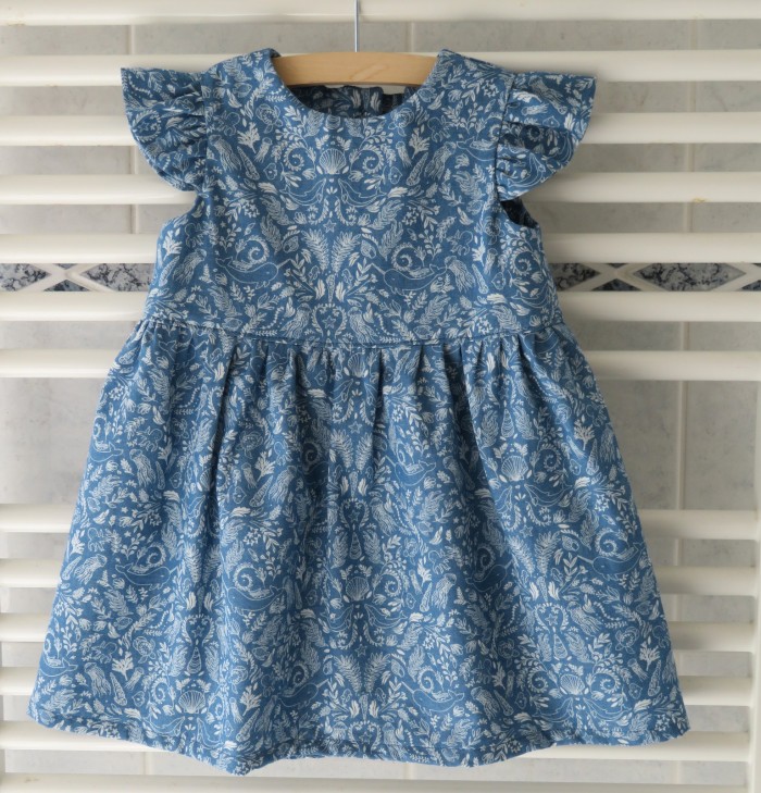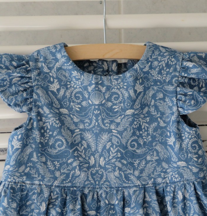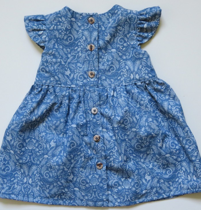 Het katoenen jurkje heeft een gevoerd bovenpand en ruches bij de armsgaten.